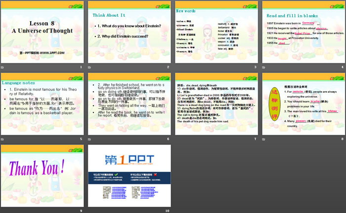 关键词:冀教版九年级上册英语PPT课件免费下载,A Universe of ThoughtPPT下载,Great PeoplePPT下载,.PPT格式;