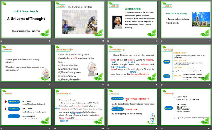 关键词:冀教版九年级上册英语PPT课件免费下载,A Universe of ThoughtPPT下载,Great PeoplePPT下载,.PPT格式;