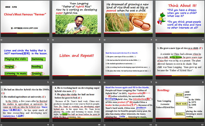 China's Most Famous "Farmer"PPT,第二部分内容:Listen and Repeat!