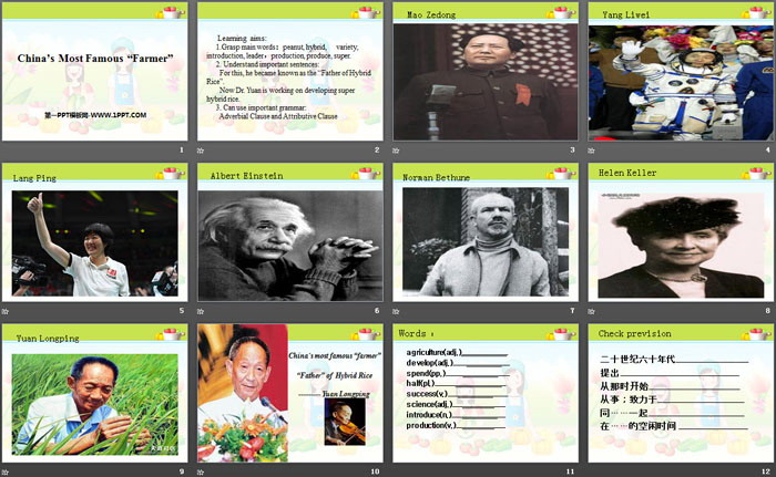 关键词:冀教版九年级上册英语PPT课件免费下载,China's Most Famous "Farmer"PPT下载,Great PeoplePPT下载,.PPT格式;