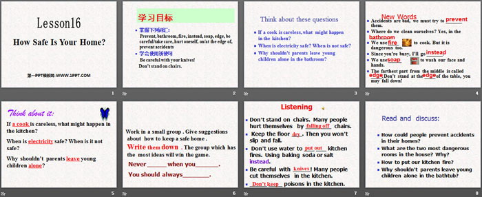 关键词:冀教版九年级上册英语PPT课件免费下载,How safe is your home?PPT下载,SafetyPPT下载,.PPT格式;