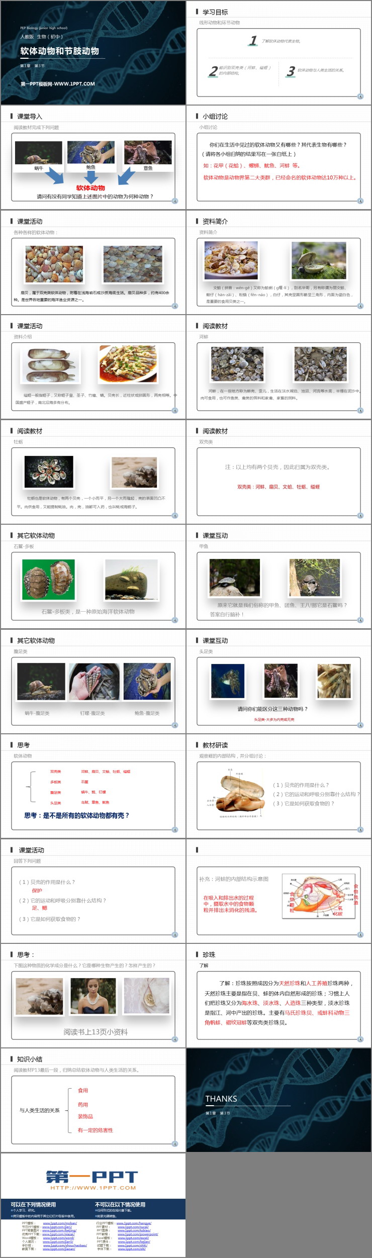 《软体动物和节肢动物》PPT精品课件包含学习目标、课堂导入、小组讨论、知识小结等内容。