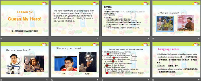关键词:冀教版九年级上册英语PPT课件免费下载,Guess My Hero!PPT下载,Great PeoplePPT下载,.PPT格式;