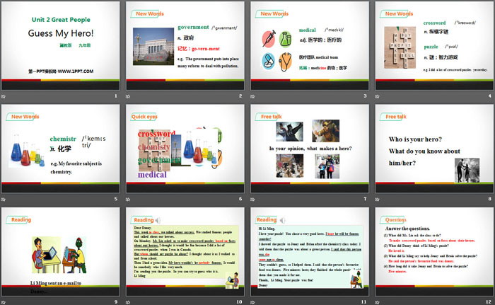 关键词:冀教版九年级上册英语PPT课件免费下载,Guess My Hero!PPT下载,Great PeoplePPT下载,.PPT格式;