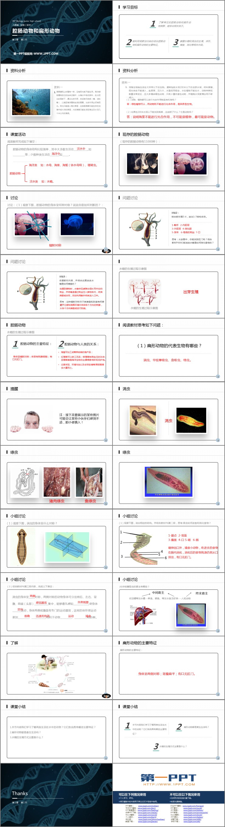 《腔肠动物和扁形动物》PPT精品课件包含学习目标、资料分析、课堂活动、问题讨论、课堂小结等内容。