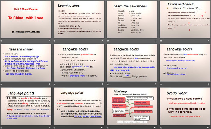 3. 读懂课文,明白文章主旨大意和掌握理解文章结构,学习白求恩医生的精神。