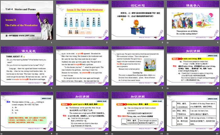关键词:冀教版九年级上册英语PPT课件免费下载,The Fable of the WoodcutterPPT下载,Stories and PoemsPPT下载,.PPT格式;