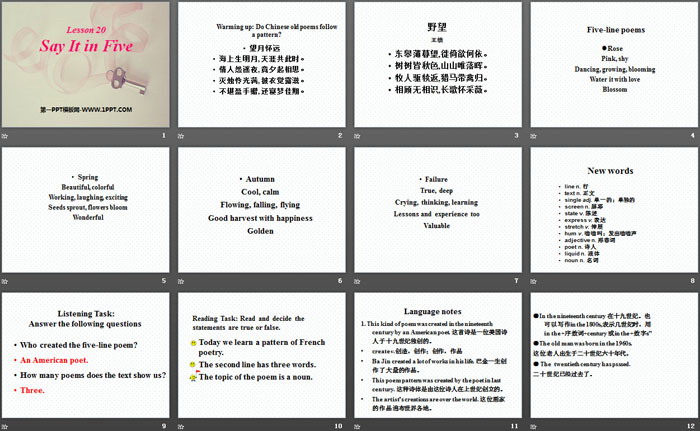 关键词:冀教版九年级上册英语PPT课件免费下载,Say It in FivePPT下载,Stories and PoemsPPT下载,.PPT格式;