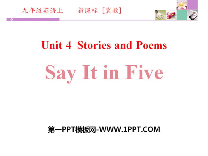 关键词:冀教版九年级上册英语PPT课件免费下载,Say It in FivePPT下载,Stories and PoemsPPT下载,.PPT格式;