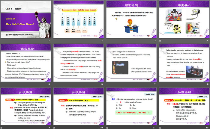 关键词:冀教版九年级上册英语PPT课件免费下载,How safe is your home?PPT下载,SafetyPPT下载,.PPT格式;
