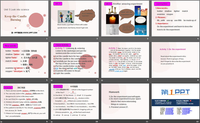 关键词:冀教版九年级上册英语PPT课件免费下载,Keep the Candle BurningPPT下载,Look into Science!PPT下载,.PPT格式;