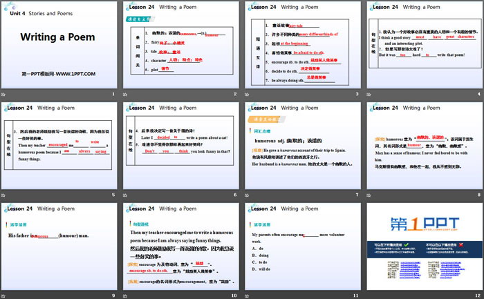 关键词:冀教版九年级上册英语PPT课件免费下载,Writing a PoemPPT下载,Stories and PoemsPPT下载,.PPT格式;