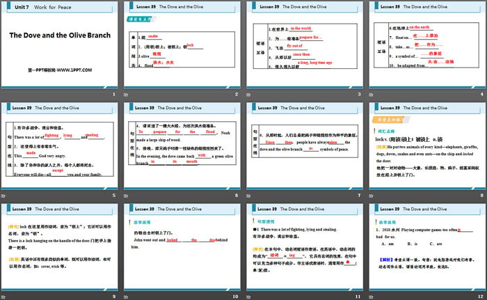 关键词:冀教版九年级下册英语PPT课件免费下载,The Dove and the Olive BranchPPT下载,Work for PeacePPT下载,.PPT格式;