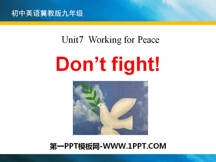 关键词:冀教版九年级下册英语PPT课件免费下载,Don't Fight!PPT下载,Work for PeacePPT下载,.PPT格式;