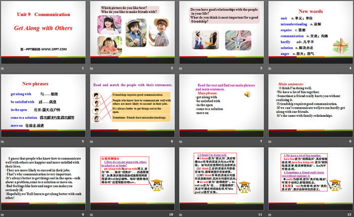 关键词:冀教版九年级下册英语PPT课件免费下载,Get Along with OthersPPT下载,CommunicationPPT下载,.PPT格式;