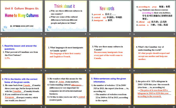 Home to Many CulturesPPT,第二部分内容:New words