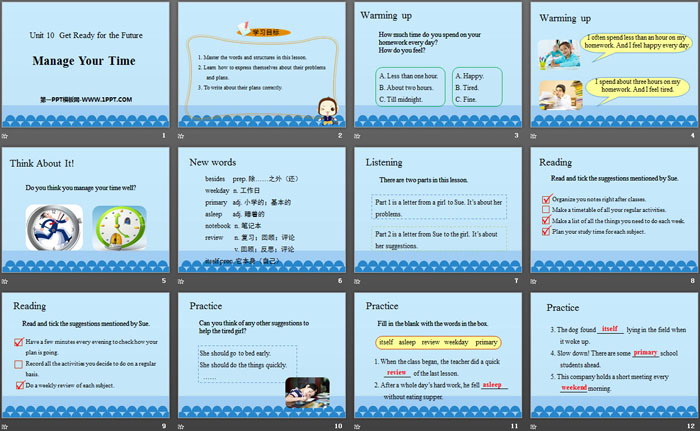 关键词:冀教版九年级下册英语PPT课件免费下载,Manage Your TimePPT下载,Get ready for the futurePPT下载,.PPT格式;