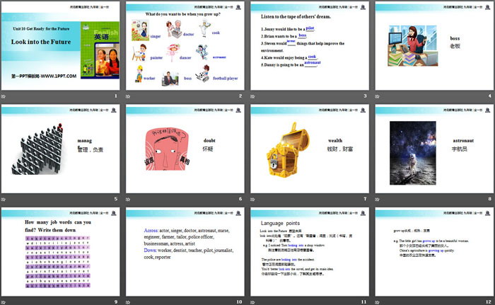 关键词:冀教版九年级下册英语PPT课件免费下载,Look into the Future!PPT下载,Get ready for the futurePPT下载,.PPT格式;