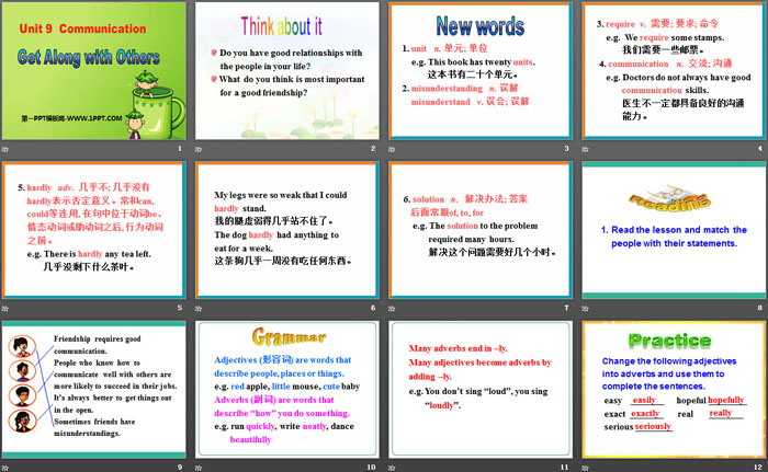 关键词:冀教版九年级下册英语PPT课件免费下载,Get Along with OthersPPT下载,CommunicationPPT下载,.PPT格式;