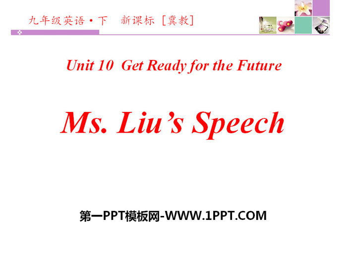 关键词:冀教版九年级下册英语PPT课件免费下载,Ms.Liu's SpeechPPT下载,Get ready for the futurePPT下载,.PPT格式;