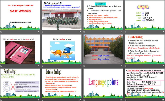 关键词:冀教版九年级下册英语PPT课件免费下载,Best WishesPPT下载,Get ready for the futurePPT下载,.PPT格式;