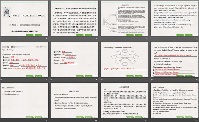 关键词:人教版高中英语必修一PPT课件免费下载,Travelling AroundPPT下载,Listening and SpeakingPPT下载,.PPT格式;