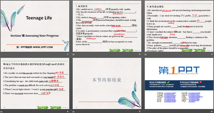 《Teenage Life》Assessing Your Progress PPT