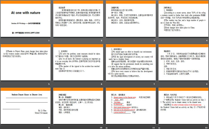 关键词:外研版高中英语必修一PPT课件免费下载,At one with naturePPT下载,.PPT格式;