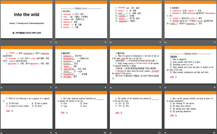 关键词:外研版高中英语必修一PPT课件免费下载,Into the wildPPT下载,.PPT格式;