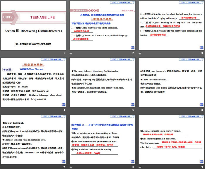 关键词:人教版高中英语必修一PPT课件免费下载,Teenage LifePPT下载,Discovering Useful StructuresPPT下载,.PPT格式;
