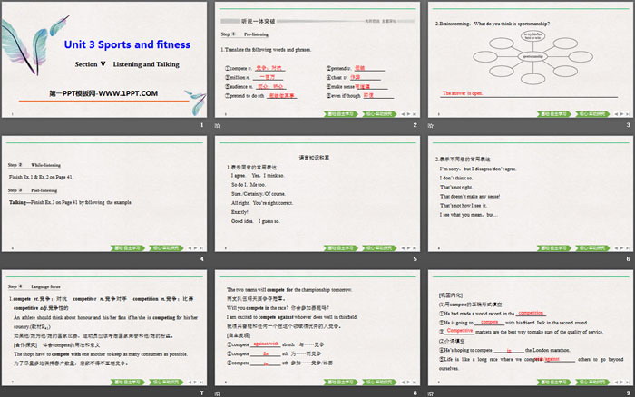 关键词:人教版高中英语必修一PPT课件免费下载,Sports and FitnessPPT下载,Listening and TalkingPPT下载,.PPT格式;