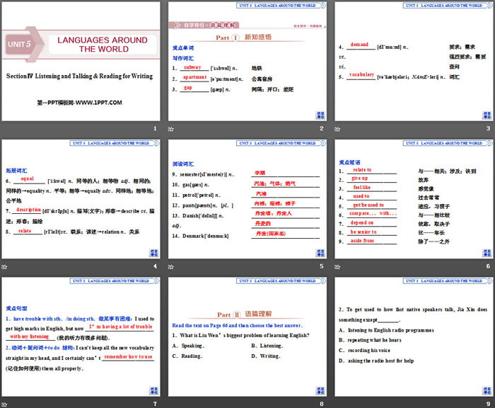 《Languages Around The World》Listening and Talking&Reading for Writing PPT
