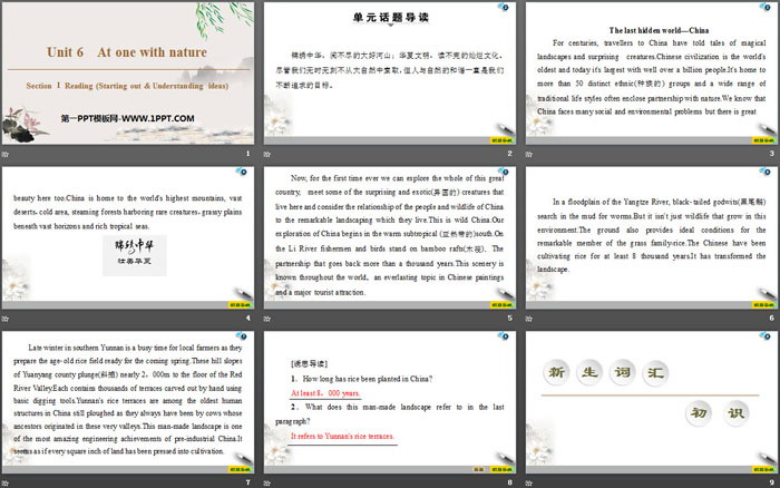 At one with nature PPT,第二部分内容:新生词汇初识