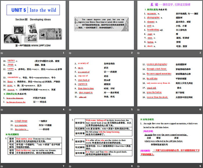 关键词:外研版高中英语必修一PPT课件免费下载,Into the wild PPT下载,.PPT格式;