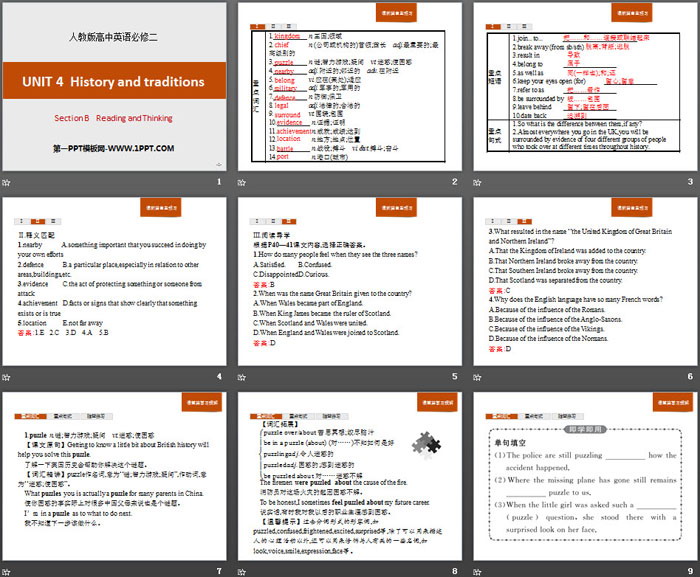 关键词:人教版高中英语必修二PPT课件免费下载,History and traditions PPT下载,.PPT格式;