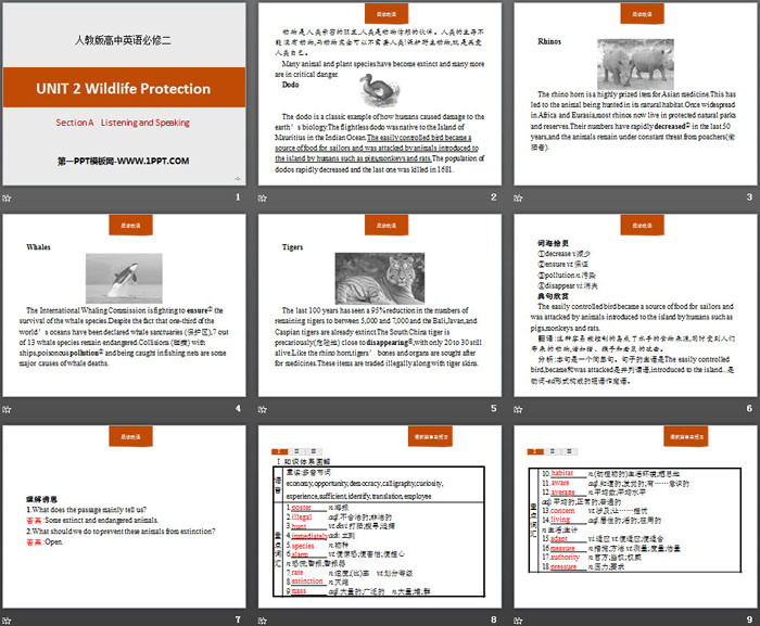 关键词:人教版高中英语必修二PPT课件免费下载,Wildlife Protection PPT下载,.PPT格式;