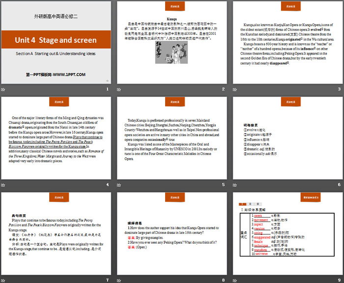 Stage and screen PPT,第三部分内容:课堂篇自主预习