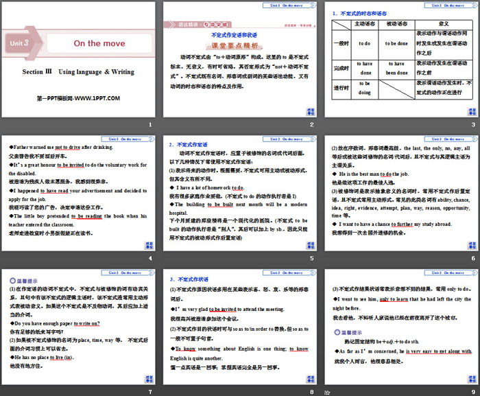 关键词:外研版高中英语必修二PPT课件免费下载,On the move PPT下载,.PPT格式;