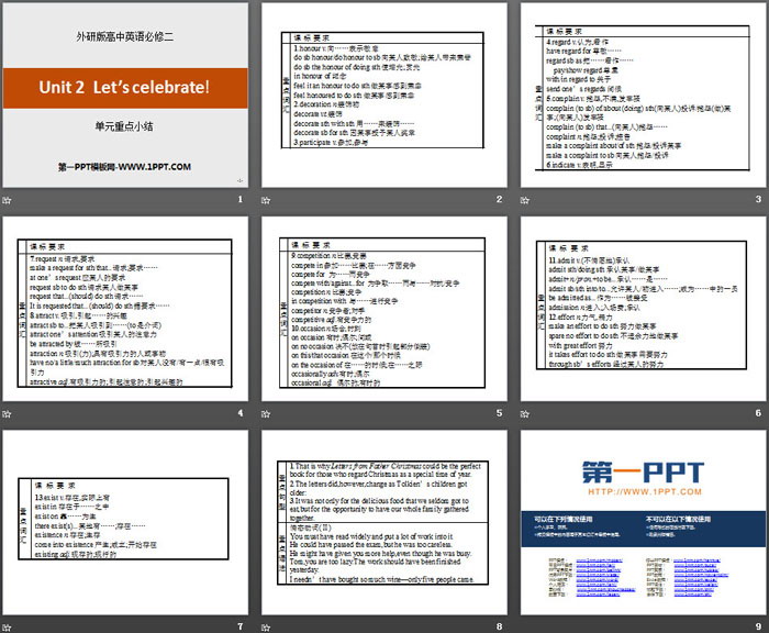 关键词:外研版高中英语必修二PPT课件免费下载,Let's celebrate! PPT下载,.PPT格式;