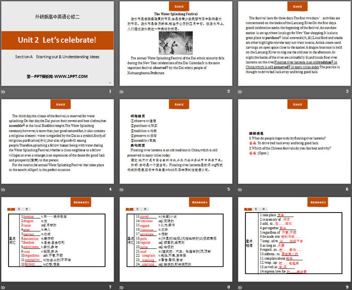 关键词:外研版高中英语必修二PPT课件免费下载,Let's celebrate! PPT下载,.PPT格式;