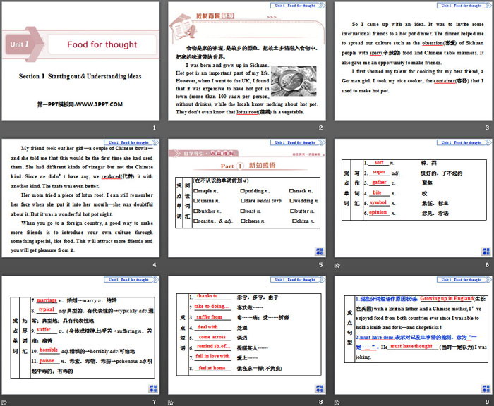 关键词:外研版高中英语必修二PPT课件免费下载,Food for thought PPT下载,.PPT格式;