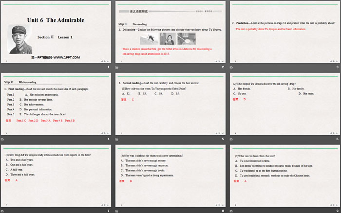 The Admirable PPT,第四部分内容:课文整体突破