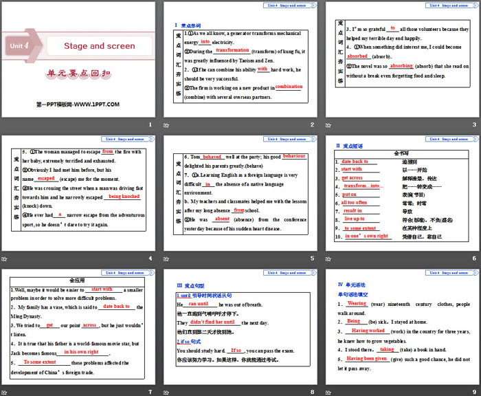 Stage and screen PPT,第四部分内容:Ⅳ 单元语法