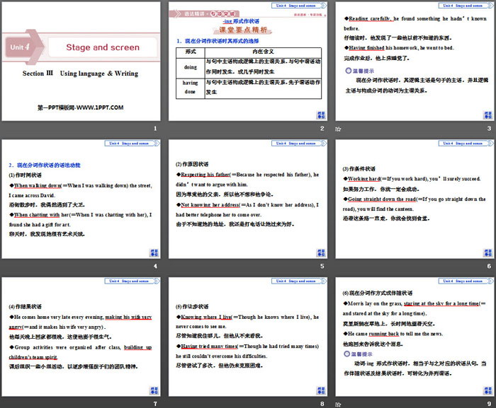 Stage and screen PPT,第三部分内容:写作指导