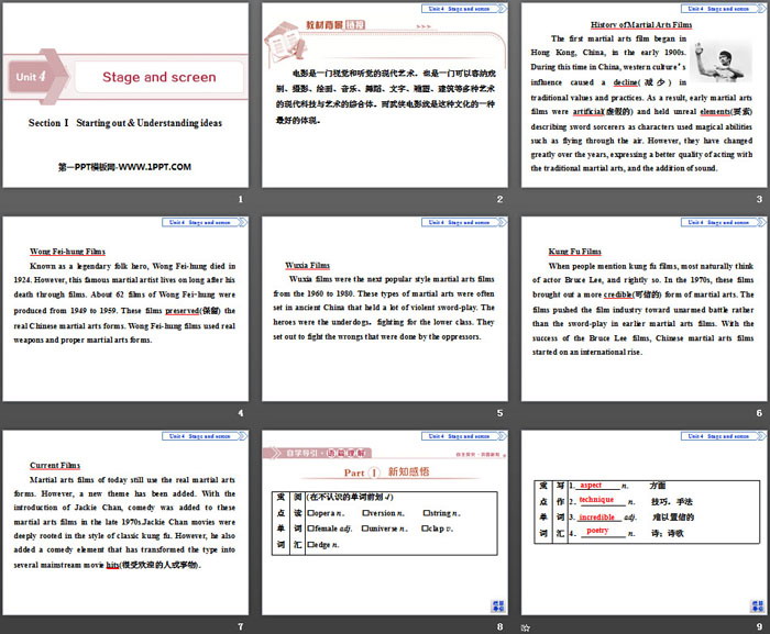 关键词:外研版高中英语必修二PPT课件免费下载,Stage and screen PPT下载,.PPT格式;