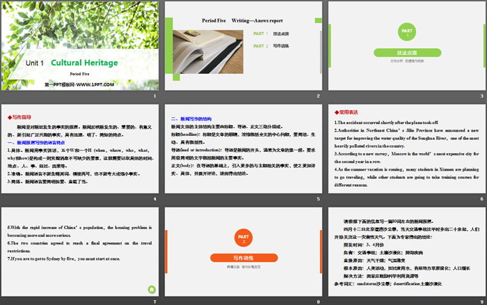 Cultural Heritage PPT,第二部分内容:PART 2 写作训练