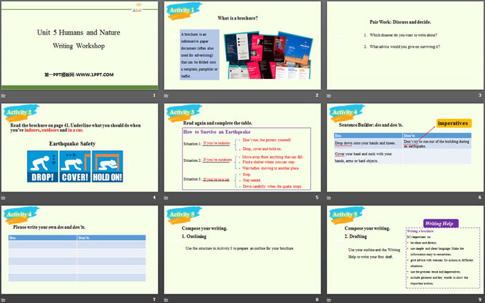 Use the structure in Activity 3 to prepare an outline for your brochure.