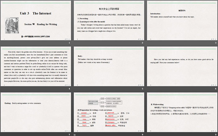 本单元的读写任务是先读一篇关于安全上网的博客,然后再写一篇相同话题的博客。