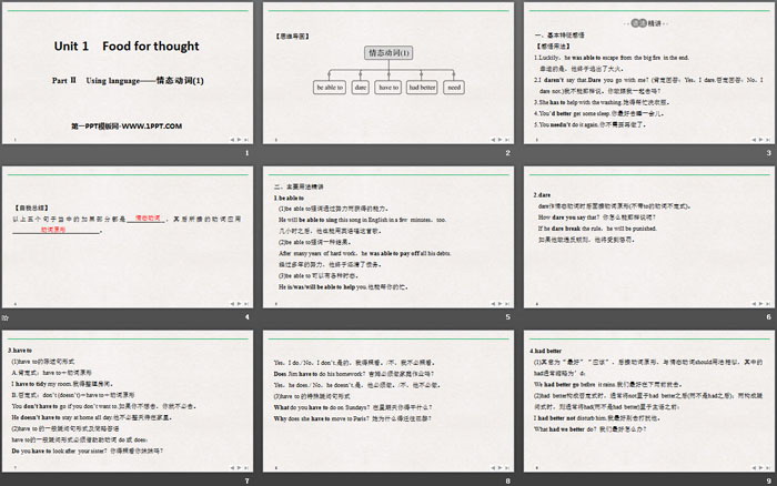 关键词:外研版高中英语必修二PPT课件免费下载,Food for thought PPT下载,.PPT格式;