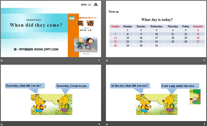 关键词:外研版一起点四年级上册英语PPT课件免费下载,When did they come? PPT下载,.PPT格式;